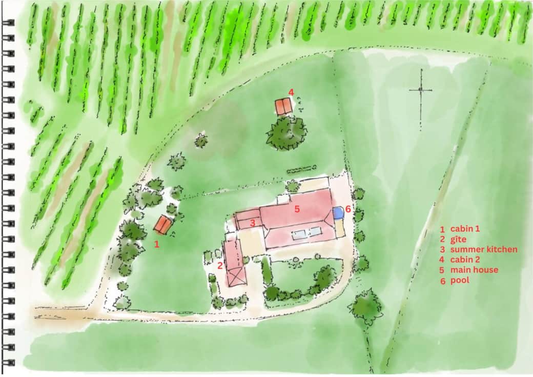 The main gîte and near wooden cabin accommodate up to 6 guests